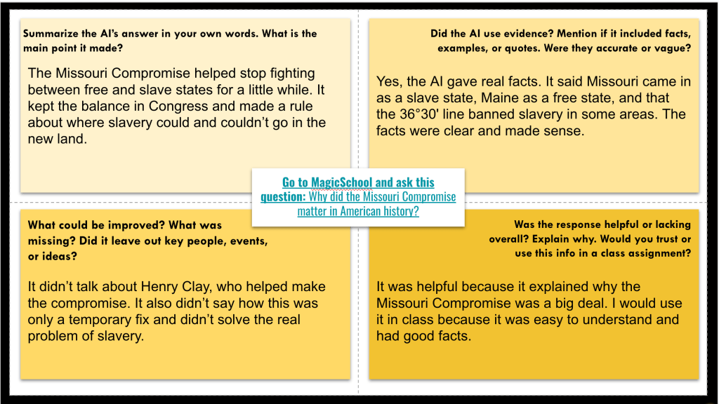 It hit different levels—retrieval, evaluation, synthesis. The tasks built on each other and helped students understand compromise not just as a definition, but as a broken fix in a broken system.