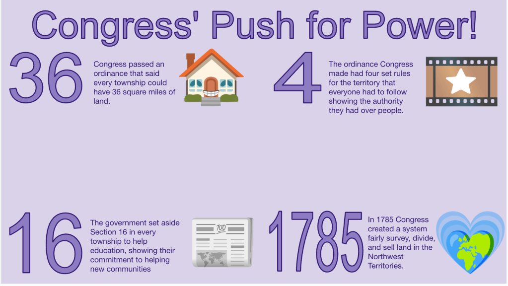Today we learned about the Land Ordinance of 1785 and the Northwest Ordinance of 1787. We began class with a short Blooket containing eight questions related to the ordinances and Northwest Territory. I included one Articles of Confederation question to keep those ideas in the mix. We used the classic Blooket game mode with one question, one attempt, and a timer. The class averages were 52 percent, 50 percent, 43 percent, 59 percent, and 55 percent. Not great, but it helped me see what they did not know before teaching anything.