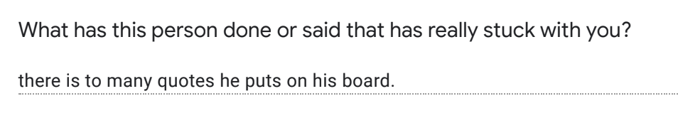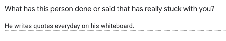 Students cared more about my daily message than Social Studies. Every day I write a new message on my board for students. I don’t read them out loud. I don’t even ask students to read them. The messages are there. Sometimes a poem, sometimes a life lesson, sometimes my thoughts on what school should be. I go through the year not knowing what these messages mean, but I discovered they mean a lot to many students….what I thought they didn’t read, they do read. So, check in with students. Share messages with them. Sometimes it means more than the subject and/or content.