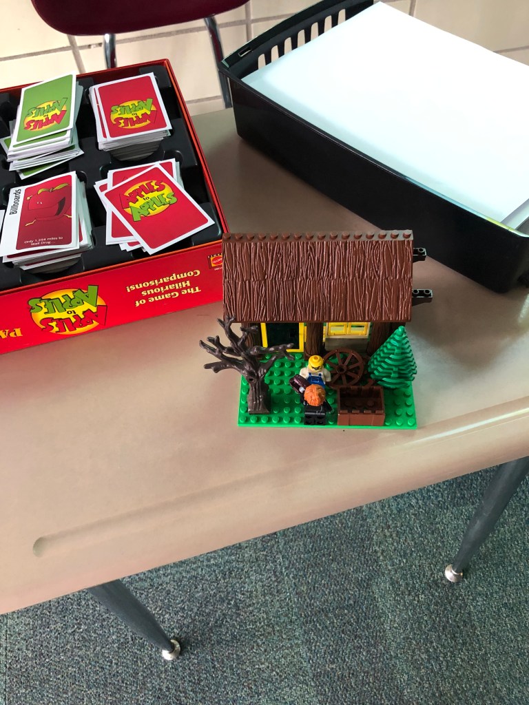 - Legos – build things related to content learned the previous 2 weeks and explain to me how it relates to something they learned.