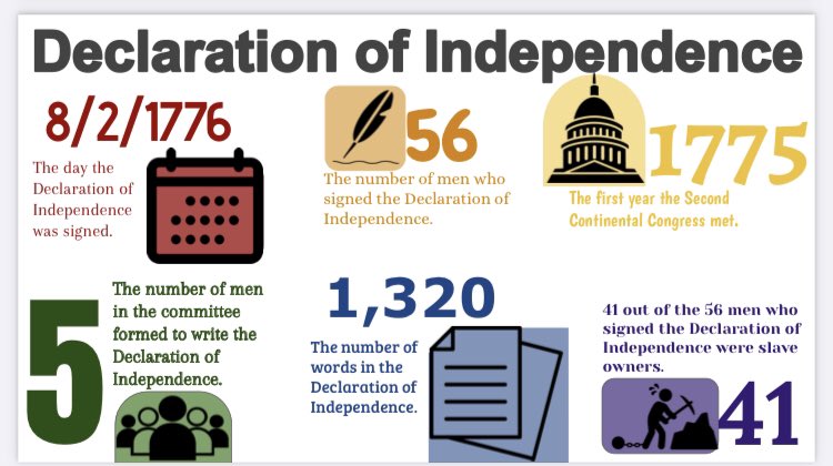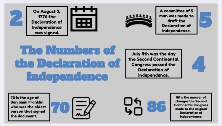 This year I wanted to focus on providing one source for students to create infographics. For the Declaration of Independence, I couldn’t find a source, so I typed this one. For the American Revolutionary War battles, I used this great source from American Battlefield Trust. Using these sources made the reading and number finding more structured.
