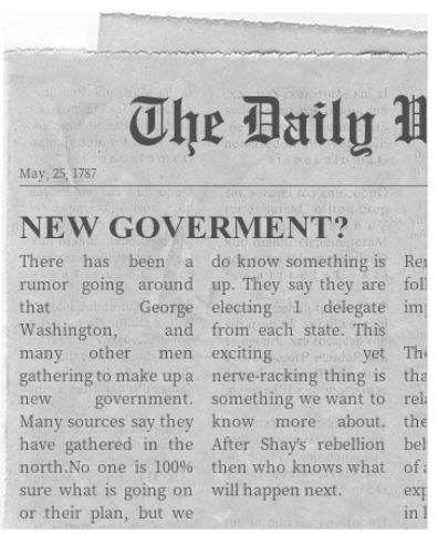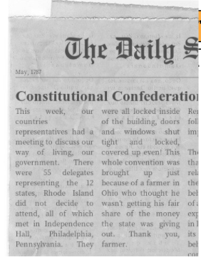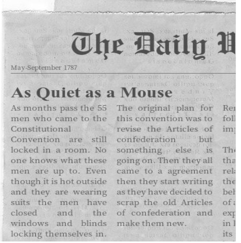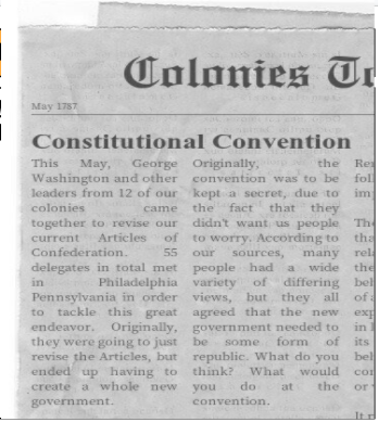 The fast and curious was set up as 10 questions, and the first rep had low class averages (63%, 60%, 68%, 63%, and 49%). Next, I set up the Cyber Sandwich with a Main Idea note taking literacy strategy. Students read for 10 minutes and took notes on who, where, when, why, and how. As always I had the reading linked on the notes slide and I had paper copies. After 10 minutes, students discussed their notes with each other and I shared my notes as well. Instead of a typical summary, students created a fake newspaper clipping about the purpose of the Constitutional Convention. The site I used for the newspaper clipping was www.fodey.com. Students can edit the paper title, headline, date, and article text.