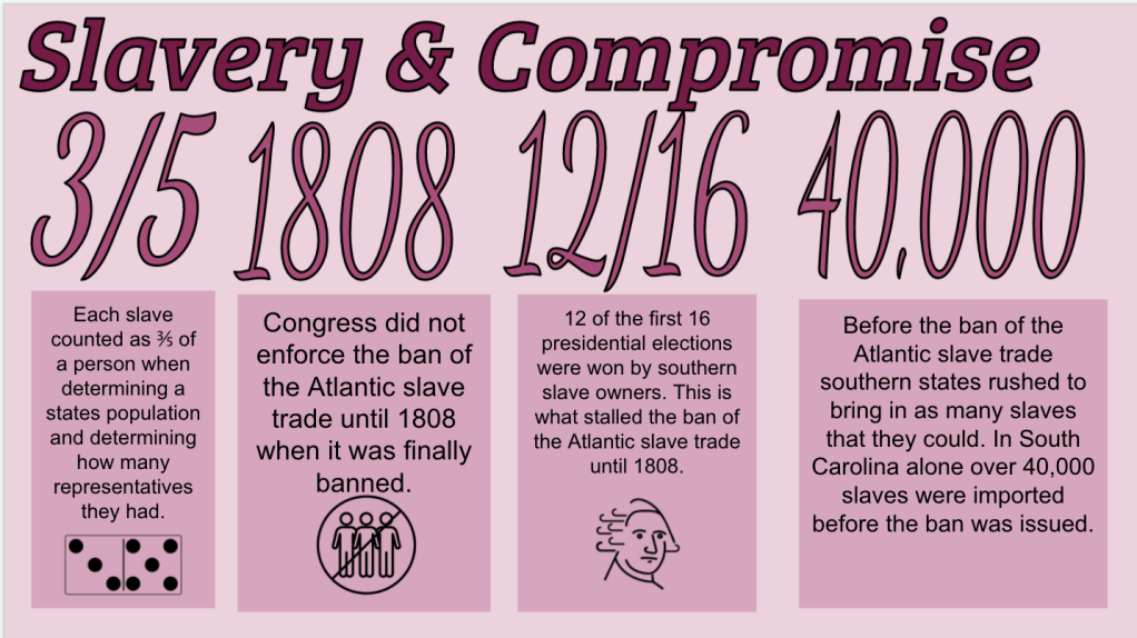 Friday, I began the day knowing it would be about constitutional compromises over slavery. The supporting question for this lesson is: What were compromises over slavery? I had a virtual lesson ready to go, but I didn’t want to do it. Instead I had this idea: