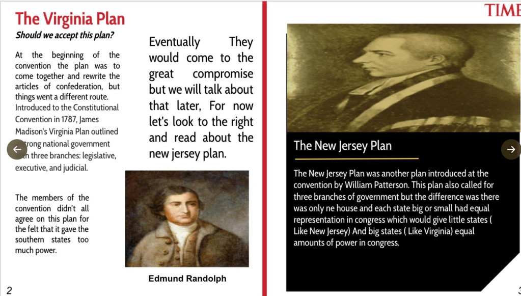 - Final Product includes a mixture of media (pictures, videos) that enhances the visual appeal and supports your understanding of the Constitutional Convention.
