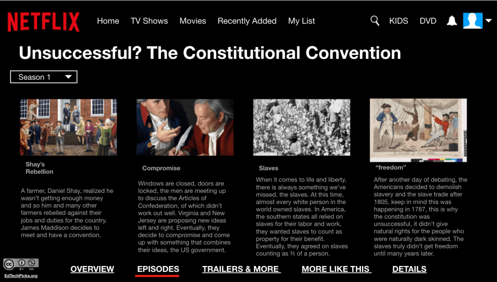 - Design a Netflix series about the Constitutional Convention as a success or a failure. Your Netflix series and episodes should focus on 5 major concepts from our unit. Click Here for template (experience and movement)