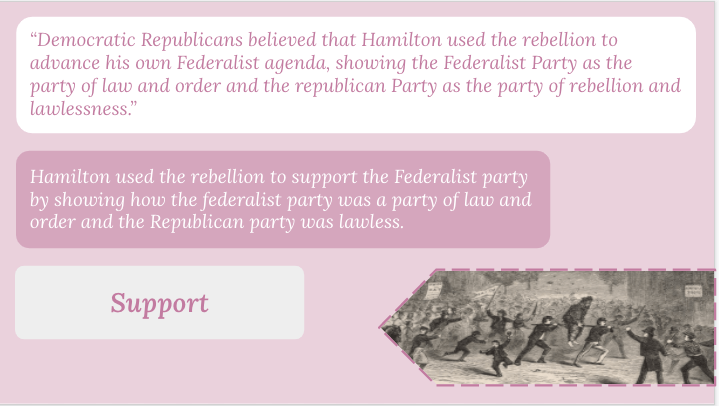 Before starting this activity, I had students look at their blog from Quest 1 to remind themselves of the political party they chose for their character. With the Content Compactor, I had students finding a quote from a reading that would show how their character would feel about the Whiskey Rebellion. Students then summarized the quote. Then they narrowed their summary down to 1 word. Here are some awesome examples: