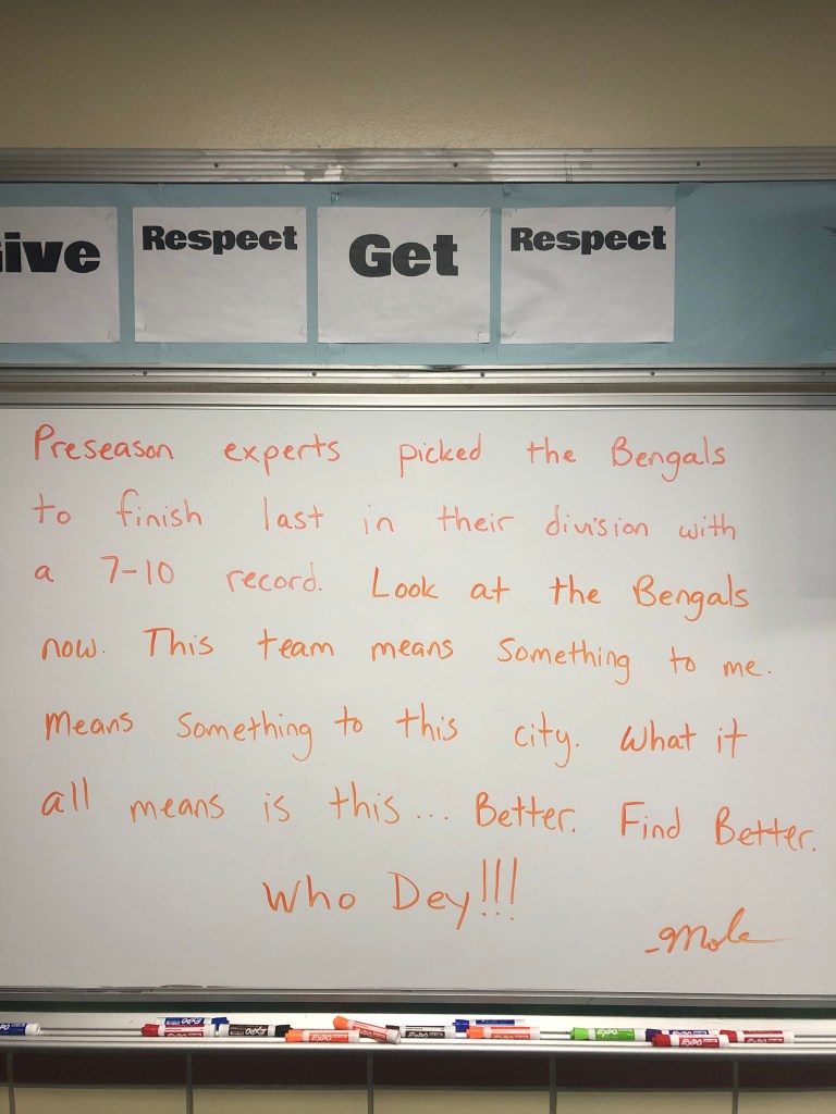 Well, not much a week in 505 – snow and ice cut the week short. The month of January was filled with interruptions – we went to remote learning twice, high school scheduling stuff for students, three or four snow days, and some upcoming field trips. My early republic unit, we are currently in, should have taken 5 to 6 weeks. However, we are only halfway through it. What should have been 5-6 weeks, will now be 7-8 weeks. Everything is a mess, but we just go with the flow and adapt.