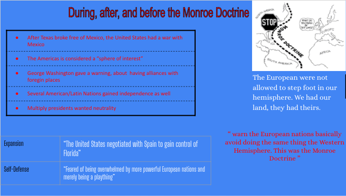 - 2 pieces of evidence – find a quote that proves the Monroe Doctrine was used for expansion. Find a quote that prove the Monroe Doctrine was used for self-defense.