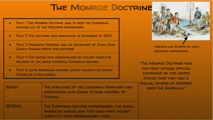 - I added questions into the Facts section of the slide – Who wrote the Monroe Doctrine? What was the Monroe Doctrine? etc…