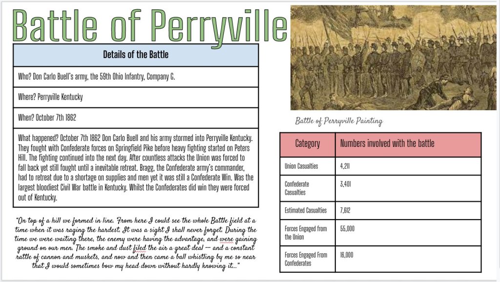 - Civil War – students used the Thick Slide to help them collect information about a battle that a local Civil War veteran fought in. This was used to help create a tribute to that Civil War Veteran.