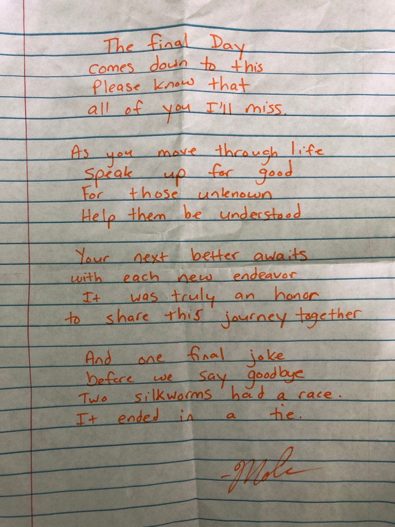 Despite it never feeling like enough, please take time to read a Letter of Recommendation a student wrote for me. Yes, this is a talented 8th grade student…..