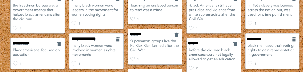 - Next I had students add important notes to a collaboration board. This was followed up with a brief discussion.