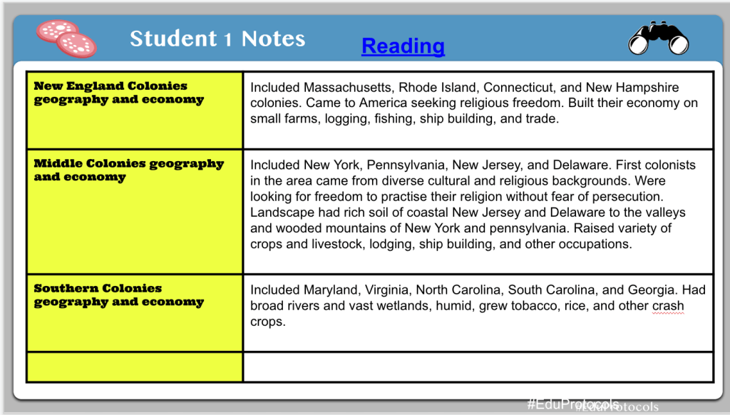 I went into school Wednesday morning wanting to do something different with my colonial regions lesson. Usually I tie in an annotated map, but I wanted something different. After some thought, I decided to use Scott Petri’s Research protocol from our book EduProtocols Social Studies Edition. I wanted this lesson to be an extension of the CyberSandwich from Tuesday. I also wanted the end goal (end creation) to be an advertisement to convince people to move to their colonial region.