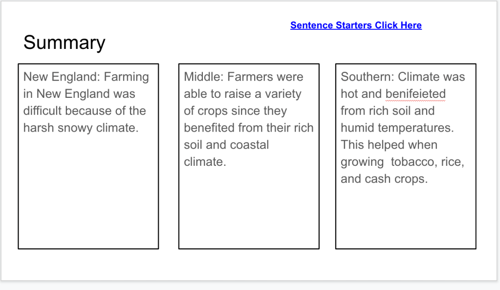On the CyberSandwich with Google Slides, I linked in a one page, TCI textbook section on the colonial regions. I also provide a paper copy as well. Here is my process for the Google Slide lesson: