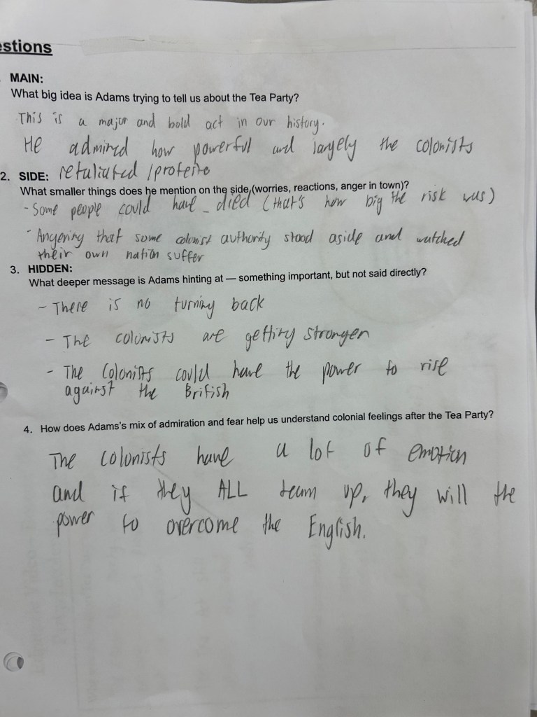 From there, we looked at protests and reactions through the eyes of Samuel Adams and Thomas Hutchinson. Same people, same thread, same narrative. Then we moved into the Townshend Acts and Adams’ Massachusetts Circular Letter. That’s also when I introduced natural rights, not waiting until the Declaration of Independence. Life, liberty, and property were already shaping colonial arguments long before 1776.
