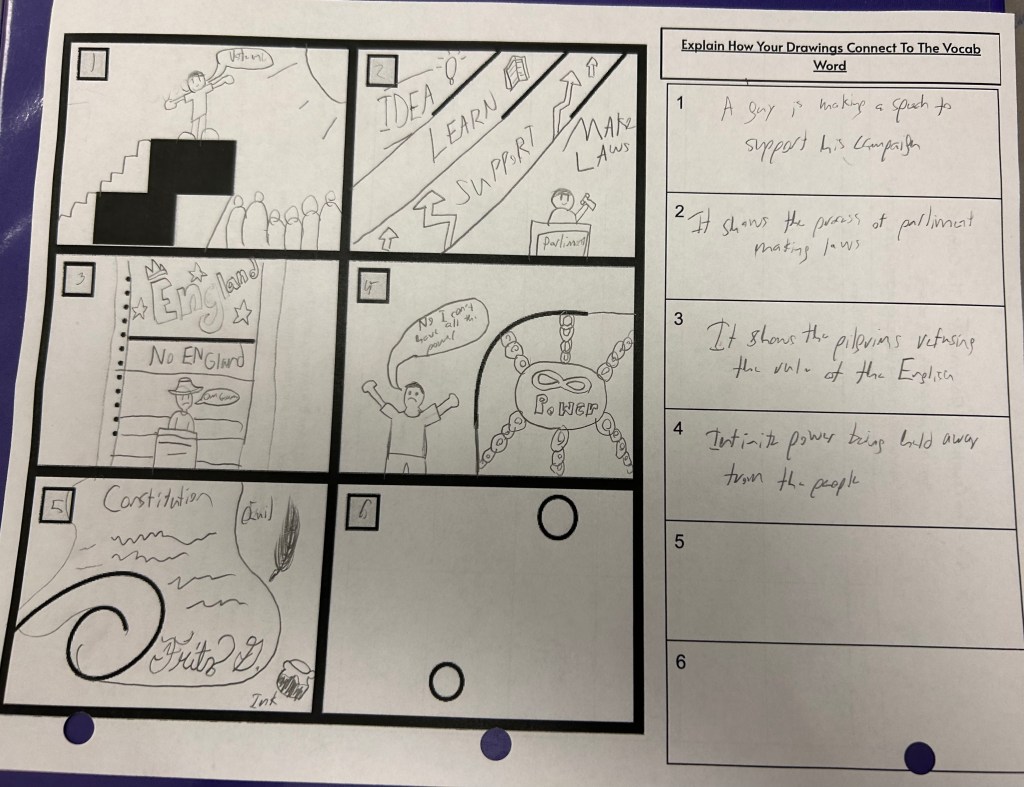 Even in the short class period, students stacked multiple exposures: vocabulary, visuals, paraphrasing, and application. They walked out with a clearer understanding of why ideas mattered as much as events.