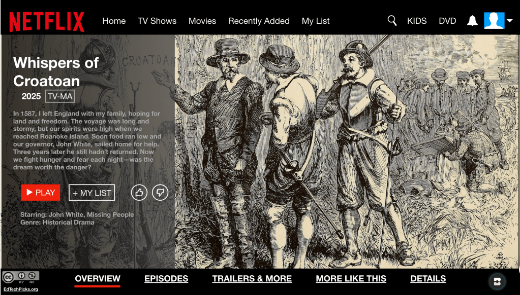 Tuesday’s class was meant to be quick, just fifteen minutes for students to finish their Netflix-style series project from last week. Each group had imagined a fictional person in England and decided which colony: Roanoke, Jamestown, or Plymouth, they would journey to and why. I figured a short work period would be enough. It wasn’t.