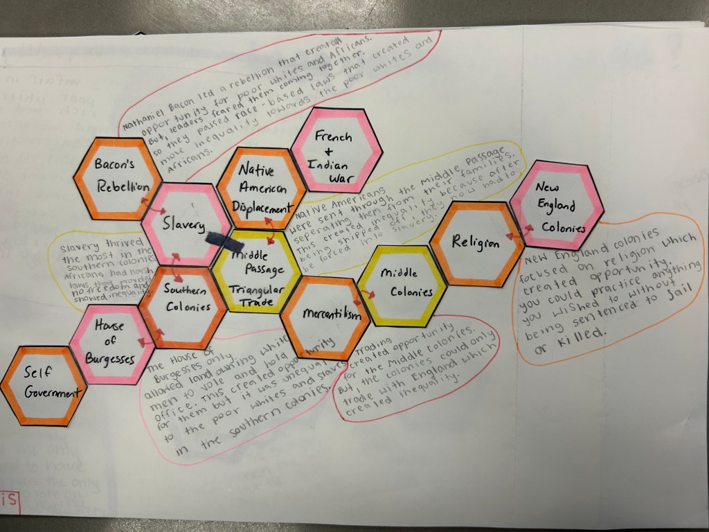 What stood out most in their reflections was the realization that opportunity often came from inequality. Many students pointed out that the comfort, wealth, and freedom enjoyed by some colonists were made possible by the forced labor, displacement, or silencing of others. It was one of those moments where the room got quiet because the connections had real weight.