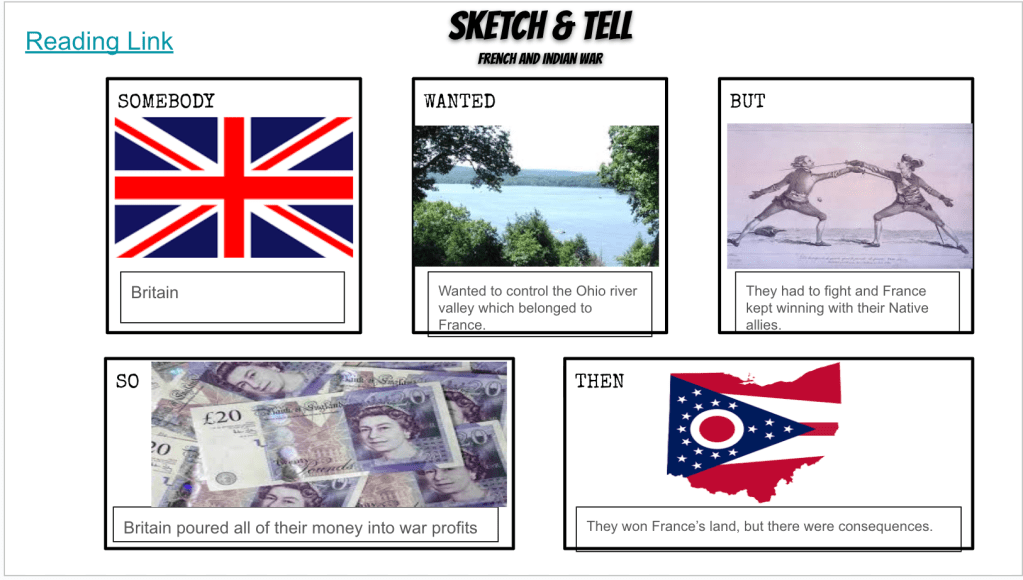 For early finishers, I pulled out a John Meehan lesson that works like a choose-your-own-adventure through the life of a soldier. Students learned about training, pay, food, daily conditions, and how soldiers actually fought. I paired it with a Sketch and Tell-O, where students drew one idea and shared one thing they learned.