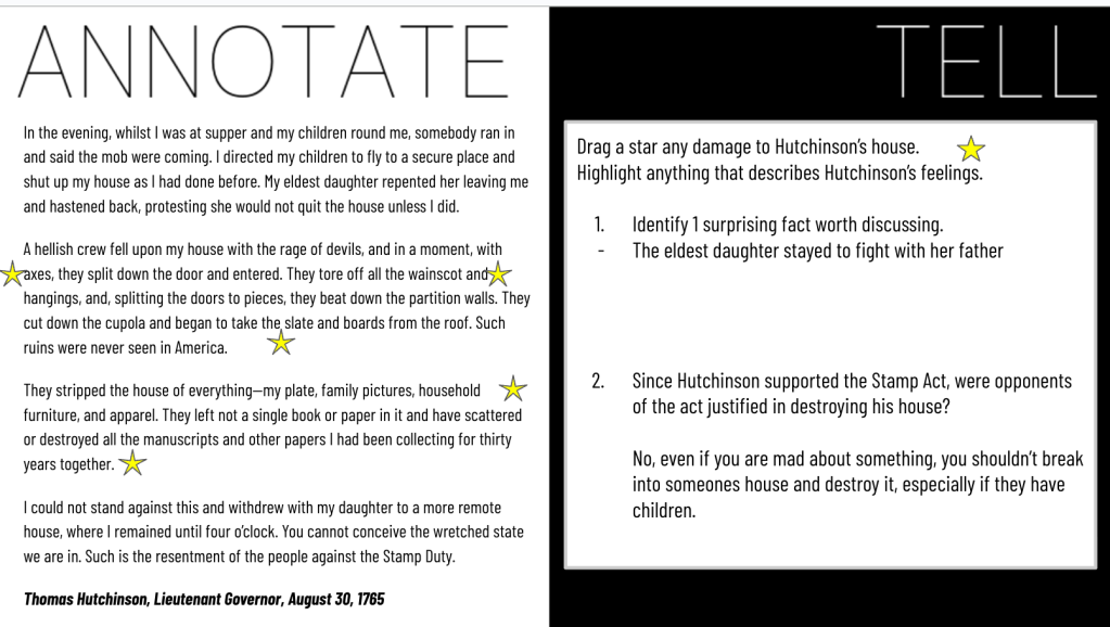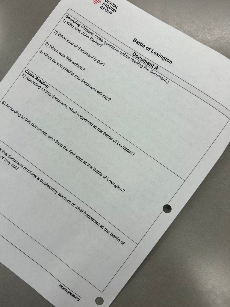Before we started, I told them why I designed the lesson this way. Three years ago, a student asked me, “Mr. Moler, did we win the Revolutionary War?” That question stuck with me. It was a reminder that what feels obvious to us as adults or teachers is not always obvious to students. I wanted to make sure I covered my bases and made it clear that yes, the colonies did win.