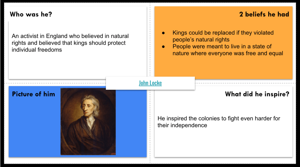 Wednesday was one of those beautiful 30 minute classes where everything had to be tight, intentional, and fast moving. The goal was simple: build student understanding of John Locke and connect his ideas directly to our compelling question about independence being worth the risk.