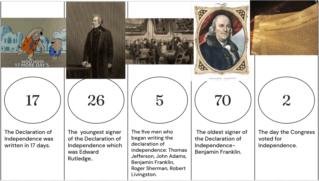 We ended the day with a reading and a Number Mania activity. Students retold the story of the Declaration of Independence using numbers like dates, ages, totals, and time spans.