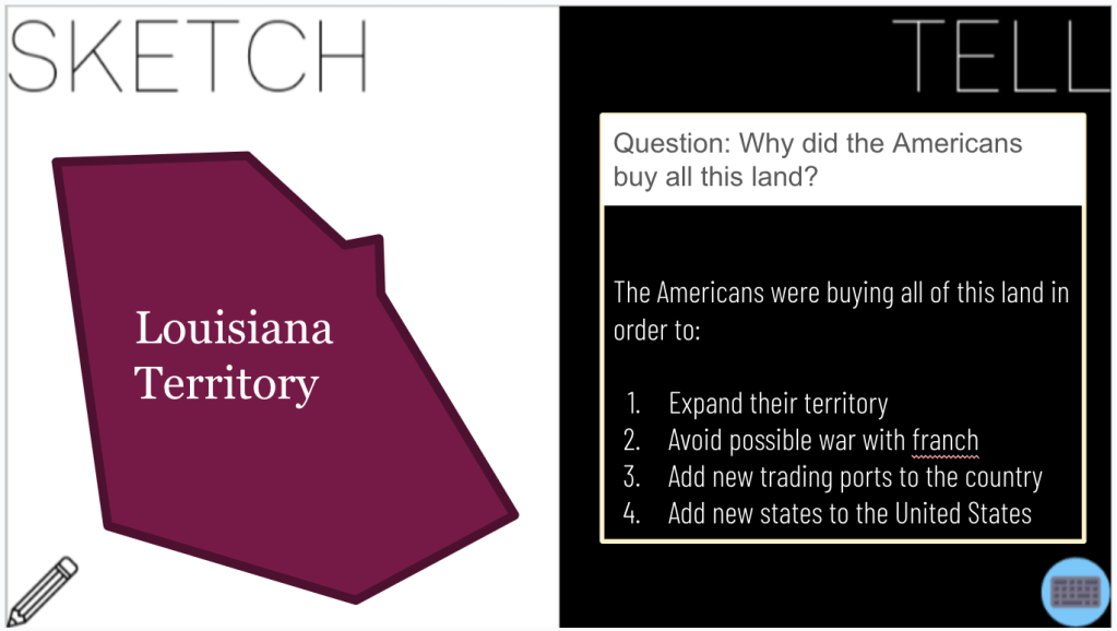 To make sense of the information, students then created a Sketch and Tell-o. Each circle represented one of the four reading sections, and they had to sketch an image tied to the content. After sketching, they circled back to answer the lesson question. The next day, we built on that foundation with a triple Venn diagram. Students compared and analyzed why Spain, France, and the Netherlands colonized North America, identifying both similarities and differences in motives and impacts.