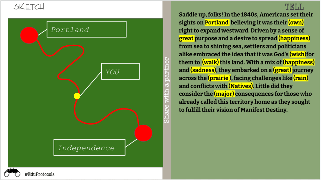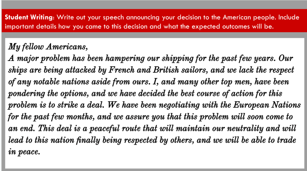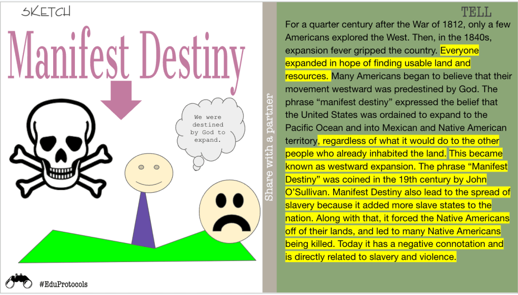 We began class with a Doubling Details warm up using the lesson question from 2.6: Why did England, France, and the Netherlands follow Spain into the Americas, and what effects did they have on Native Americans and North America? Students had one minute to respond in exactly eight words. Then they had two minutes to find a partner and build their response into sixteen words. Finally, I gave them four minutes to find two other partners and expand it into thirty-two words. Each group shared, and I picked the best one. This quick routine gave students practice in stretching their thinking and refining their ideas before we dug into new content.