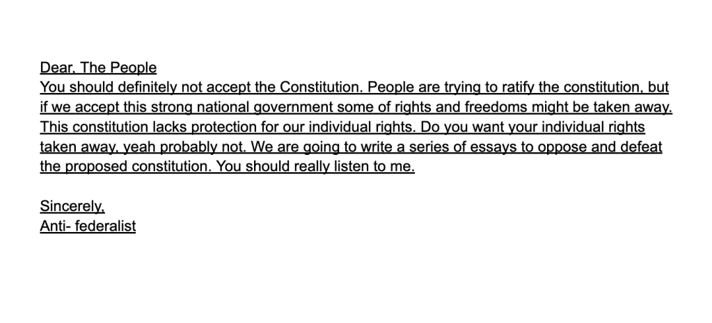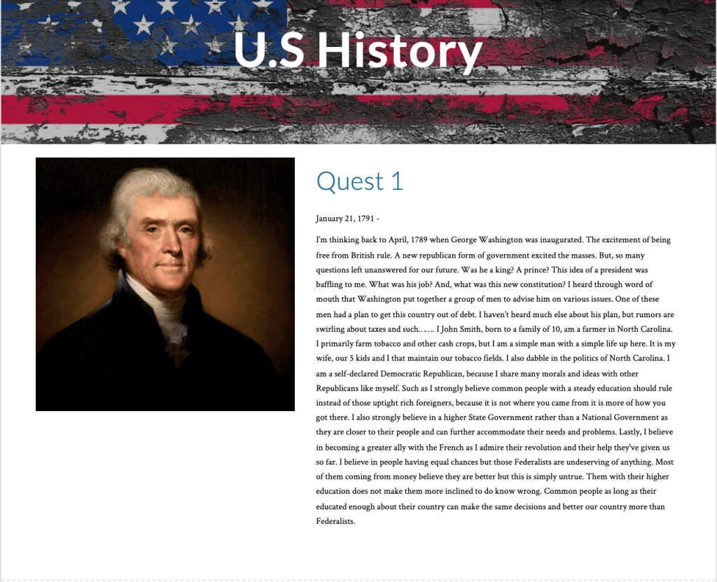 Students were finishing up learning about Federalists, Democratic Republicans, and creating a character/avatar for our quest before we switched to remote learning. As a result, I had to slow things down and switch up the lesson a bit to make things less stressful.