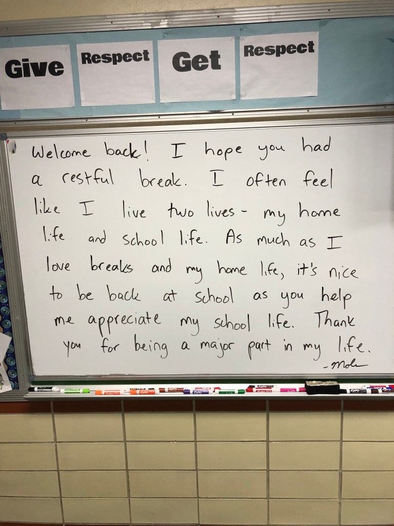- Have a separate Google Meet running – In Google Classroom I have an assignment titled, Resources To Help You. Under this assignment I have a copy of our remote schedule, a picture of my room message, and a Google Meet link that is open all day. Next to me I have a separate Chromebook open with the Google Meet running. Students join into the Meet whenever they need help throughout the day. When I’m away, I share my screen with a message that says, “I’ll be back shortly.”