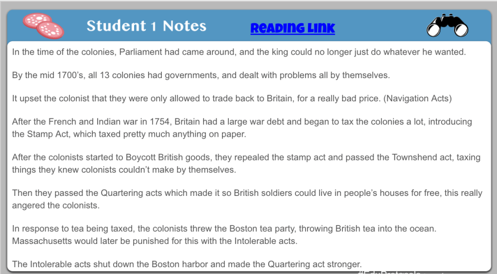 On Friday I gave students a choice of how they wanted to learn about compromises over slavery at the Constitutional Convention. Monday was a continuation to finish assignments. Students were finishing infographics or the remote learning (structured and basic) assignment. The main goal for this assignment was having students identify 3 compromises over slavery – 3/5ths compromise, Fugitive Slave Law, and Banning the Atlantic Slave Trade in 1808.