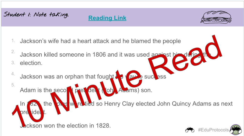 True to its delicious name, CyberSandwich merges collaborative learning with reading and writing skills. Students have 10 minutes to read content related to our topic, discuss with peers, and then write a summary paragraph to solidify their understanding. Its structured format builds content knowledge, improves comprehension and writing abilities, fosters collaboration, and is easily differentiated. The versatility of CyberSandwich allows for seamless adjustments in format without compromising engagement, whether through physical handouts or Peardeck slides.