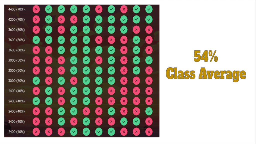 I asked these 10 questions aloud at the beginning of class, and students wrote down their answers on paper. I let them know the goal was to try to get 6 or more questions correct. Out of my 129 students, only 7 managed to meet that 6 correct answer threshold. The average score was a 3.2 out of 10. This pre-assessment showed me we have a mountain of learning ahead in this unit! But I was not discouraged because I know from experience that scores tend to start low, leaving lots of room for growth.