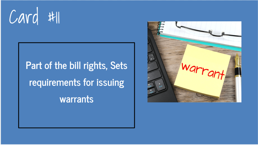 I kicked off class on Tuesday with a 10-question Quizizz to assess students’ baseline knowledge of the Bill of Rights amendments. As expected, most remembered the 1st two then got fuzzy on the rest. Class averages were fairly low: 39%, 33%, 45% and so on. Time for a memorable amendment upgrade!
