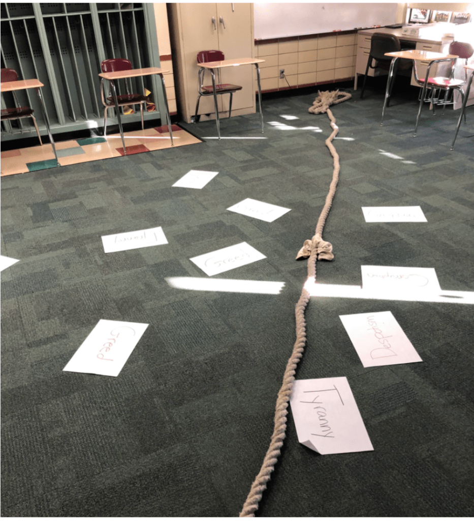On Thursday, with our normal 47-minute classes back in session, we focused on the concept of separation of powers across the three governmental branches. To creatively introduce why dividing functions is necessary, I utilized a Dave Burgess hook activity with a tug-of-war rope stretched across my classroom. Scattered on the floor were papers labeled “corruption,” “greed,” “despotism” and “tyranny” – negative concepts I explained represent pitfalls into which governments can fall. I asked students how we can lift the rope to raise government above these dangers. Volunteers tried unsuccessfully to complete the challenge single-handedly. Eventually a trio was needed to fully raise the “government” rope. This illustrated why concentrating all governmental powers and responsibilities into one ruling entity invites misconduct.