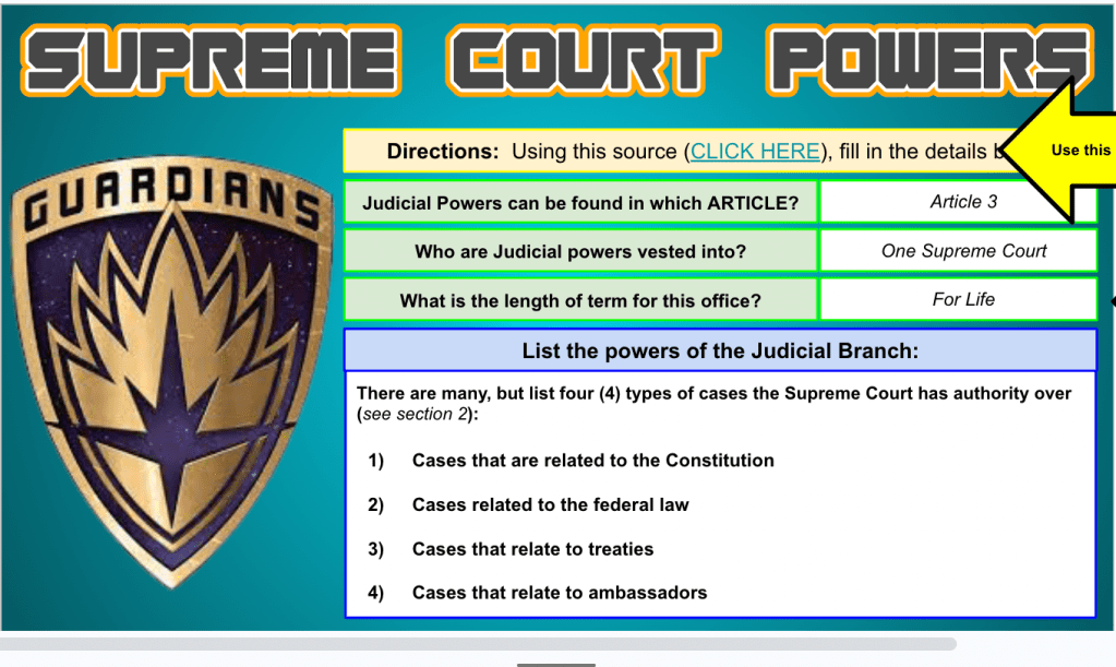 While light on flashy games today, the lesson offered an essential dive into judicial review using multiple learning modalities from video to vocabulary building to customized reading.