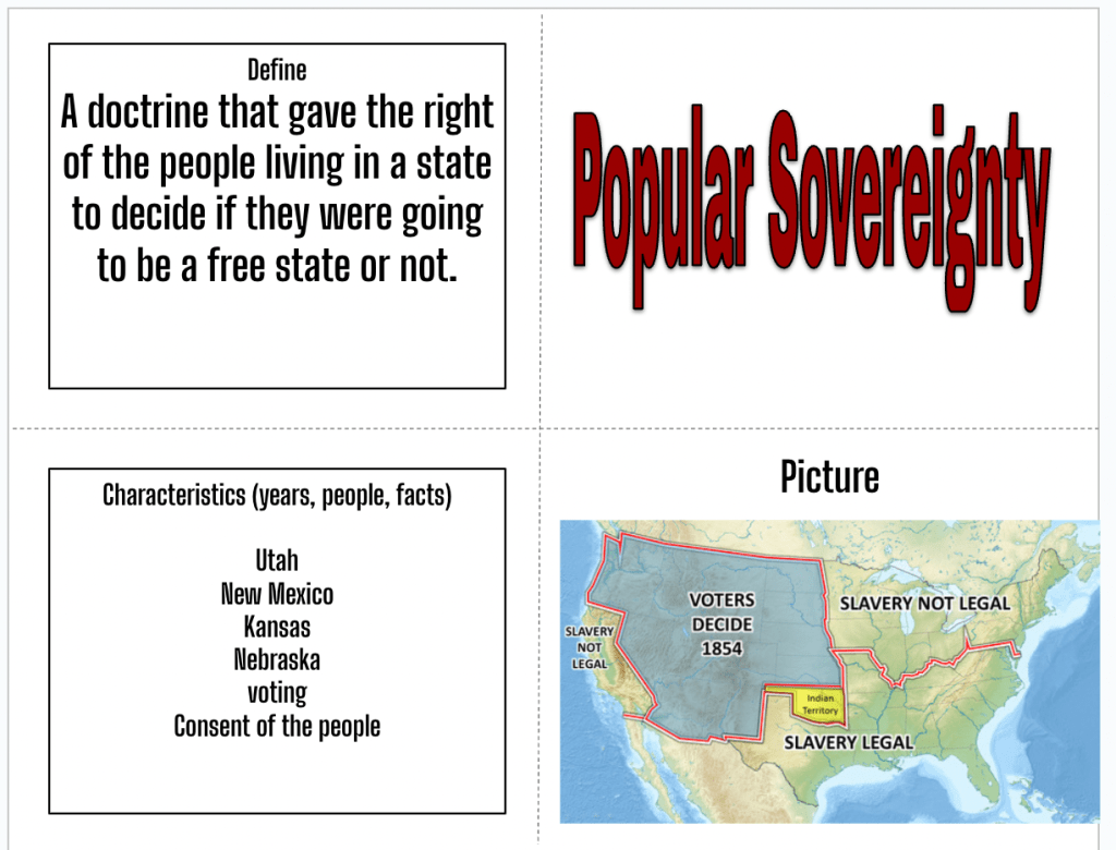 The week closed out with the beginning of events that led up to the Civil War. For this lesson I focus on 4 areas: