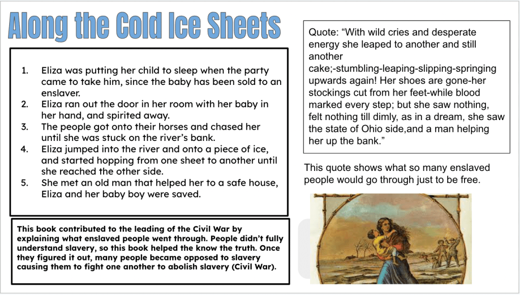 To set the tone for our exploration, I began by sharing a quote from George Fitzhugh, a pro-slavery advocate from the 19th century. I included Fitzhugh’s words on a Thin Slide. His words aimed to portray the lives of enslaved people in a distorted light, emphasizing their supposed happiness and freedom. However, I encouraged our students to critically analyze this perspective and question the validity of such claims. This quote served as a backdrop for the lesson, challenging students to delve deeper into the reality of resistance to slavery.