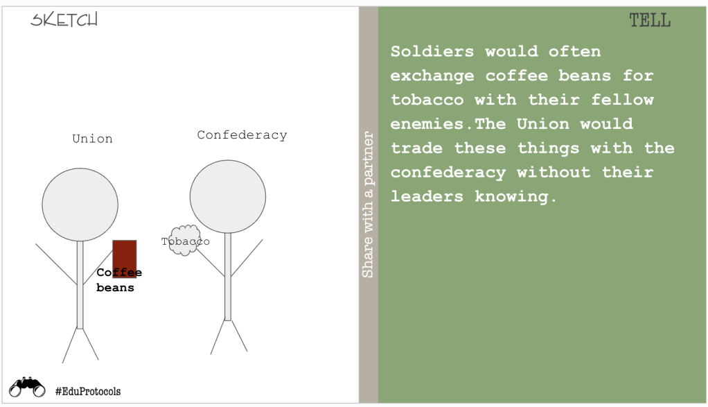 Knowing that I would be absent, I wanted to ensure my students had meaningful learning opportunities. I provided them with two choices for the day. The first option was to continue their research on a veteran, a project they had been working on for some time. Alternatively, they could watch an educational video on the life of a Civil War soldier, accompanied by a sketch and a writing activity.