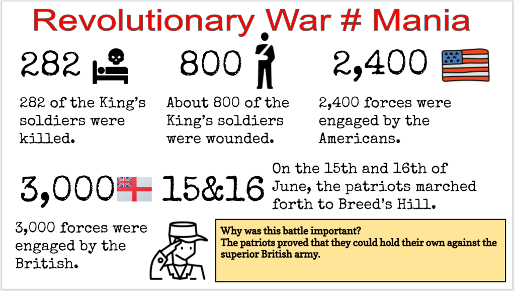Much like the Age of Exploration unit, I began with a Number Mania timeline and a definition of the American Revolutionary time period. We also used an 8parts to analyze the toppling of the King George statue. I threw in a Nearpod, a History Haiku, and that was the week.