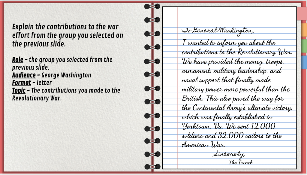 Thursday and Friday were reserved for a Nearpod. I’ve been incorporating some Nearpod this year because it allows me to gaina. bit of control in my classroom. Some of the original, creative stuff I would normally do I feel like I can’t do it with some of the classes. I found a Nearpod on the French and Indian War and I edited it to fit in some EduProtocols such as Thin Slide and Sketch and Tell. Another thing that occurred to me was the French and Indian War is referred to as the Seven Years’ War in the textbook. I tried to make that adjustment as well.