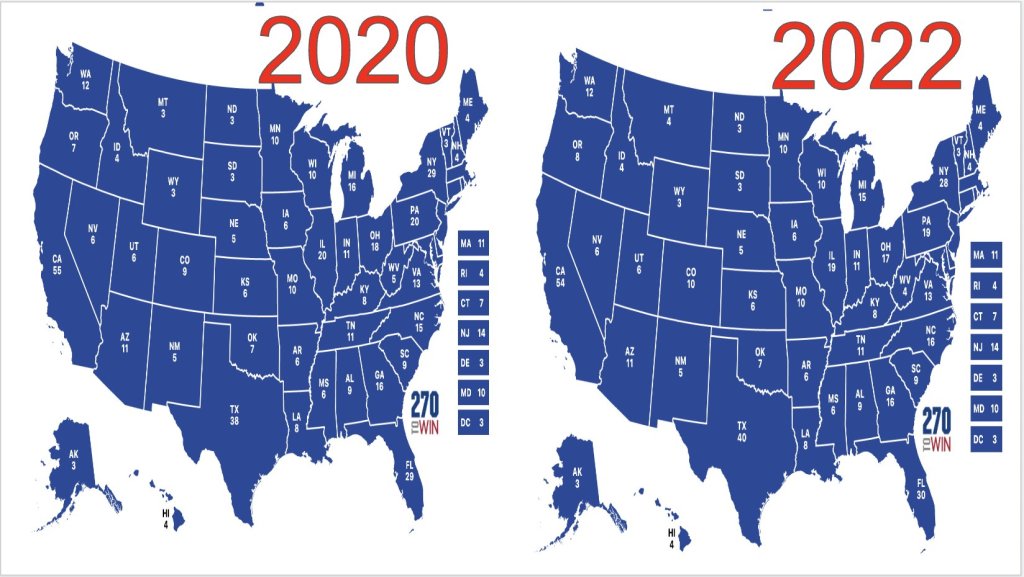On Wednesday I began class with a Spot the Differences photo. I went to 270toWin and took screenshots of the 2020 election map and the 2022 election map. Students had to spot 10 differences.