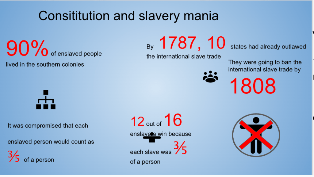 This week we continued with our unit on the Constitutional Convention. Our question is, “Should the Constitutional Convention be considered a success?” Students are weighing multiple options – a stronger national government was created. However, at the same time, the Constitution was created without the consideration of enslaved persons or women.