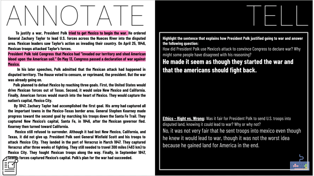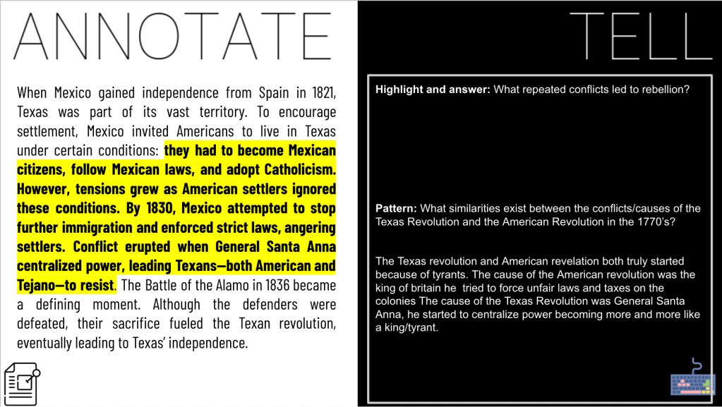 I shared a Padlet and told them: “Based on what you read, I was thinking of an object. It’s hidden in the clues. Guess what it is, and explain how it connects to a country being pulled apart by the issue of slavery.”
