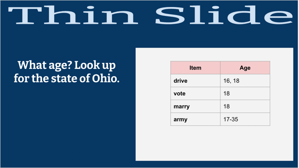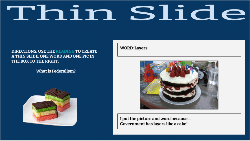 - Final Synthesis Question: The ultimate goal was for students to answer the question, “Why is it important to have a voice in government?” After they’d worked through the sources and guiding questions, they were meant to summarize their findings on a Thick Slide.