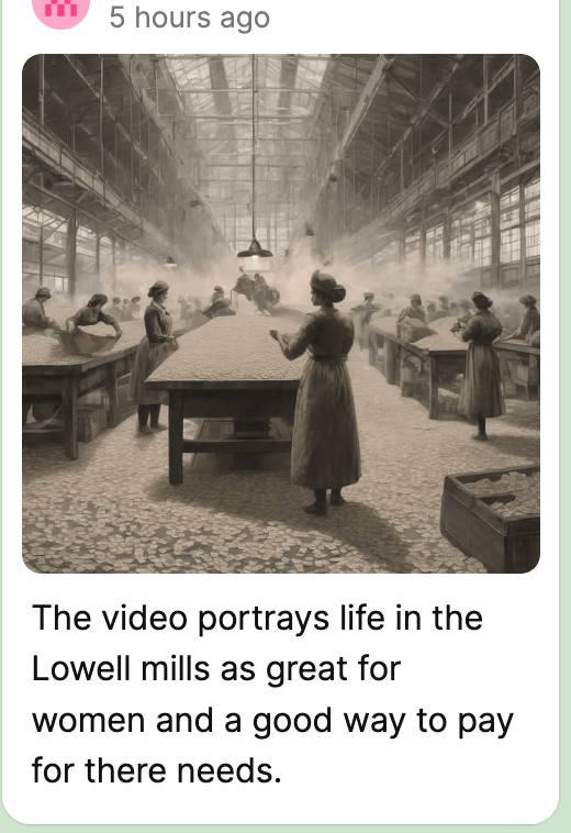 Instead of finding an image, students used Padlet’s AI image generator. They entered a short phrase, made it their caption, and used the body of the post to explain what their image represented. That move—credit to the students—was gold. It made the captions matter. It made the explanations more thoughtful. And it gave them a creative outlet that still demanded analysis.