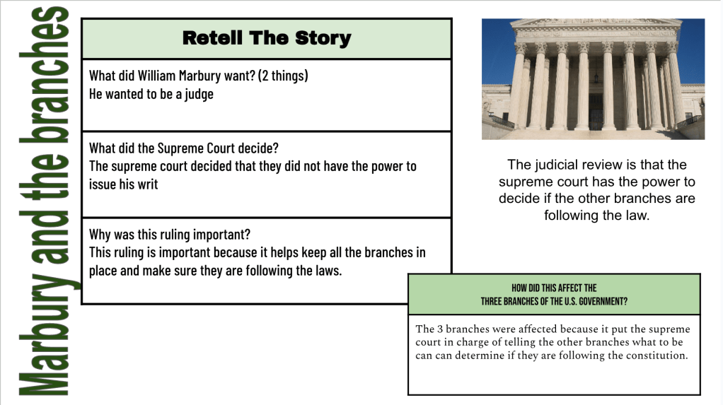 Answering Essential Questions: Students reflected on the executive branch’s role and how the Constitutional Convention resolved its structure.