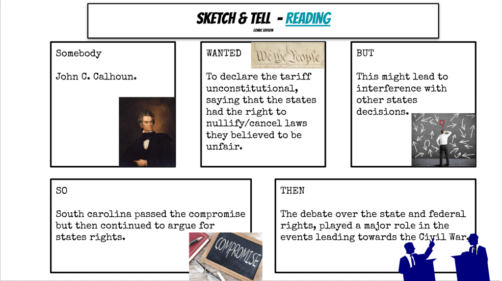 I shared a Padlet and told them: “Based on what you read, I was thinking of an object. It’s hidden in the clues. Guess what it is, and explain how it connects to a country being pulled apart by the issue of slavery.”