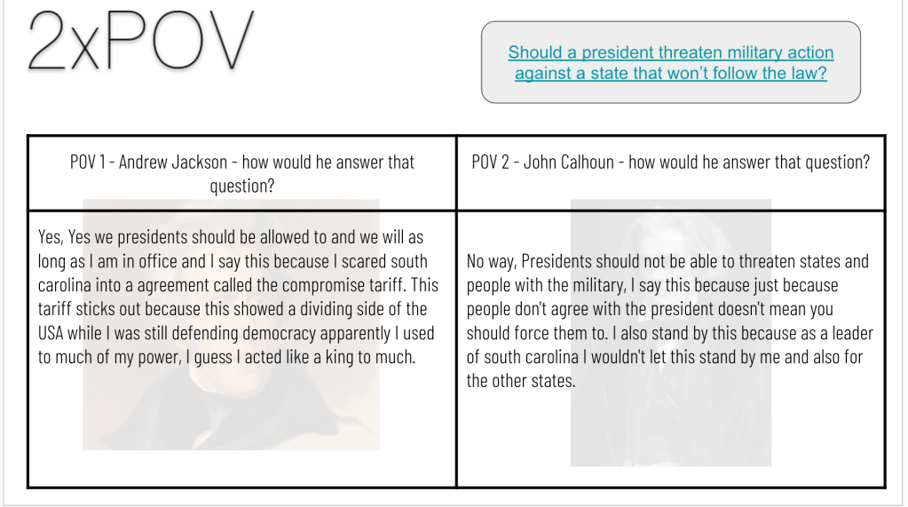 This activity encouraged critical thinking and connected historical perspectives to the broader debate over the executive branch.
