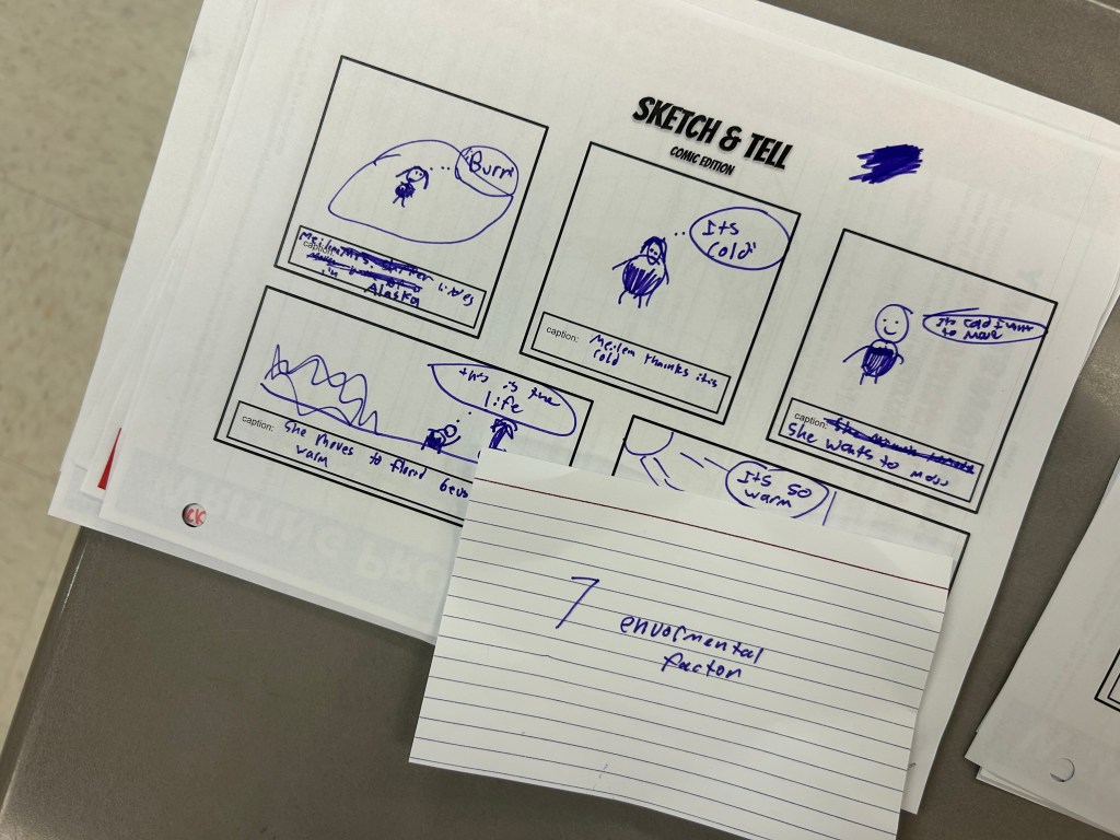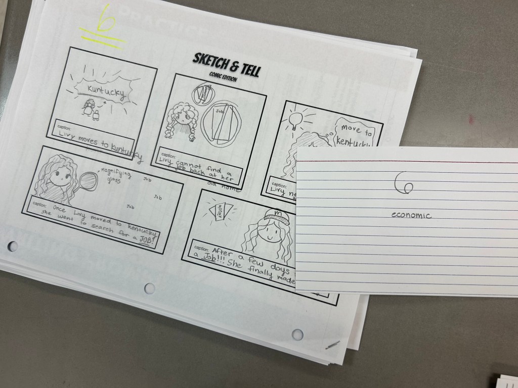 My favorite thing from the week came from my 6th grade class. Their textbook included a writing activity where students had to write a story featuring a factor that pushed someone to migrate. As I was looking at it, I immediately thought, this would make a great Sketch and Tell comic instead of just another paragraph.